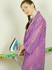 Long haired 31 year old housewife Aurora Jade makes laundry fun