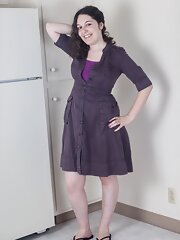 Sweet hairy girl Tamar strips off her purple dress, playing with her hairy pussy while she sits naked on her kitchen floor. She spreads her legs and shows a pussy worthy of this hirsute porn.